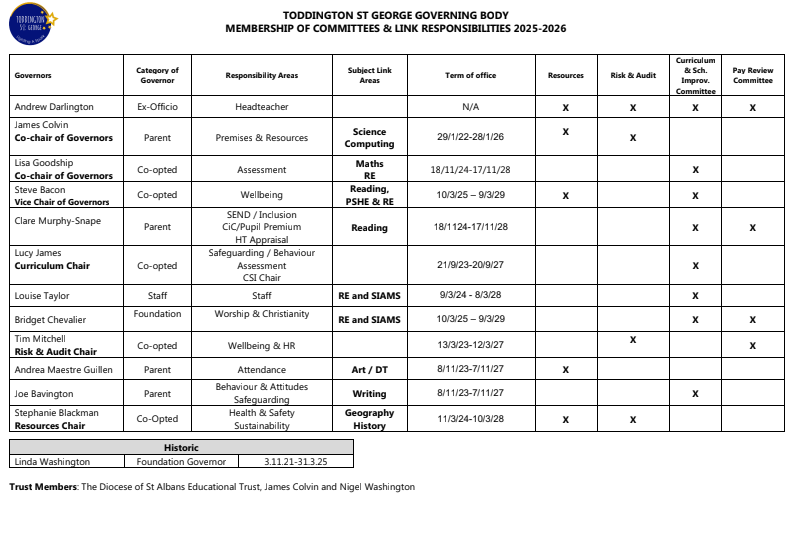 Information about the roles and responsibilities of the Governing Board can be found below and in the Scheme of Delegation.